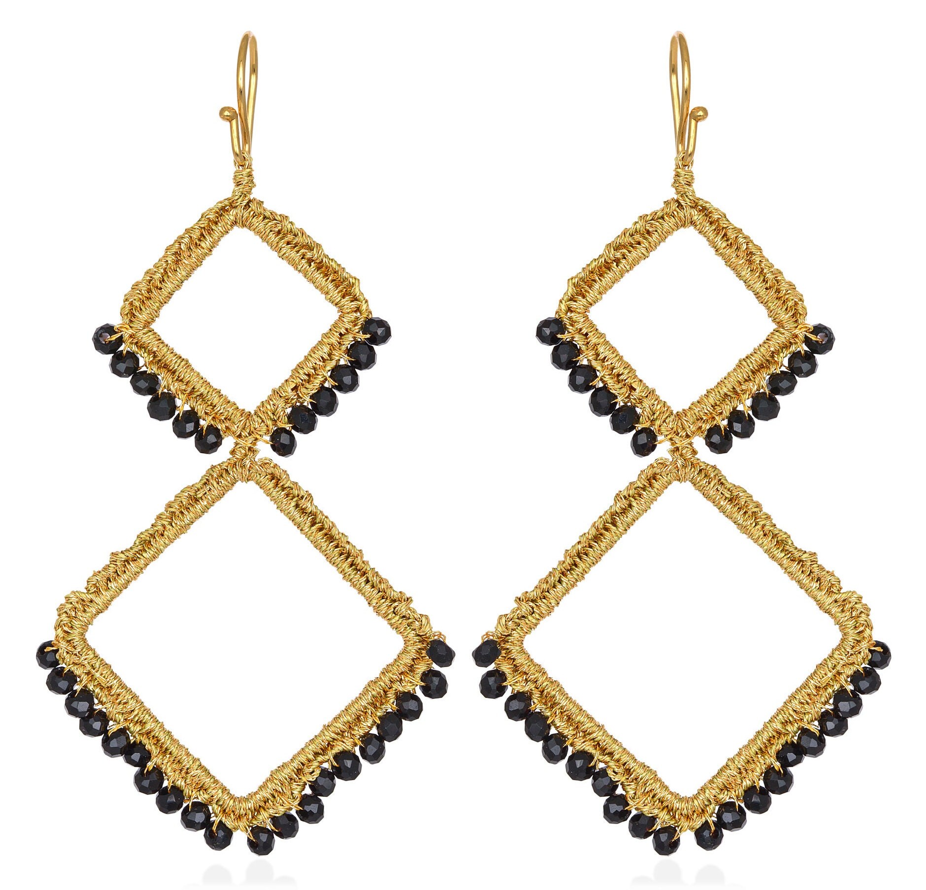 High quality materials have been used for these handcrafted earrings, faceted black beads (2mm), gold plated silver base hook (925) and gold thread.