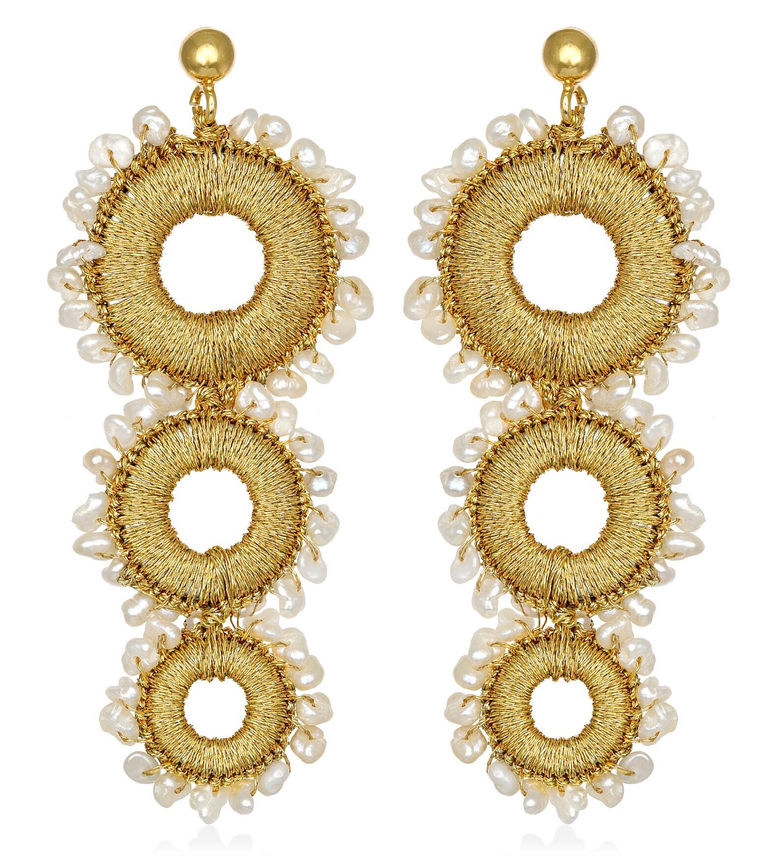 High quality materials have been used for these handcrafted earrings, such as gold plated ear studs with silver base (925) and butterfly closure, freshwater pearls, gold thread.