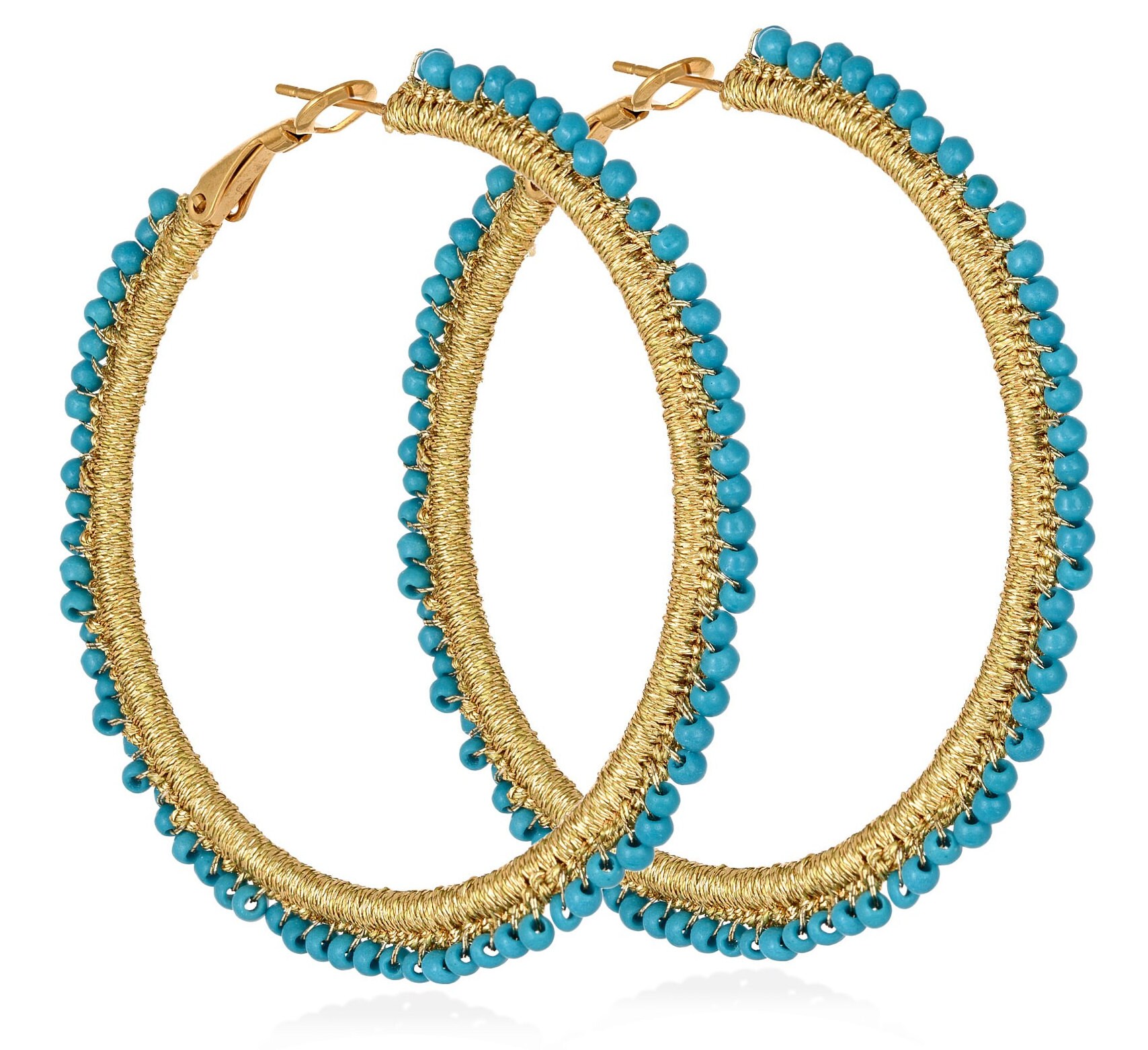 High quality materials have been used for these handcrafted earrings, such as steel hoops, turquoise howlite beads (1mm), gold thread.