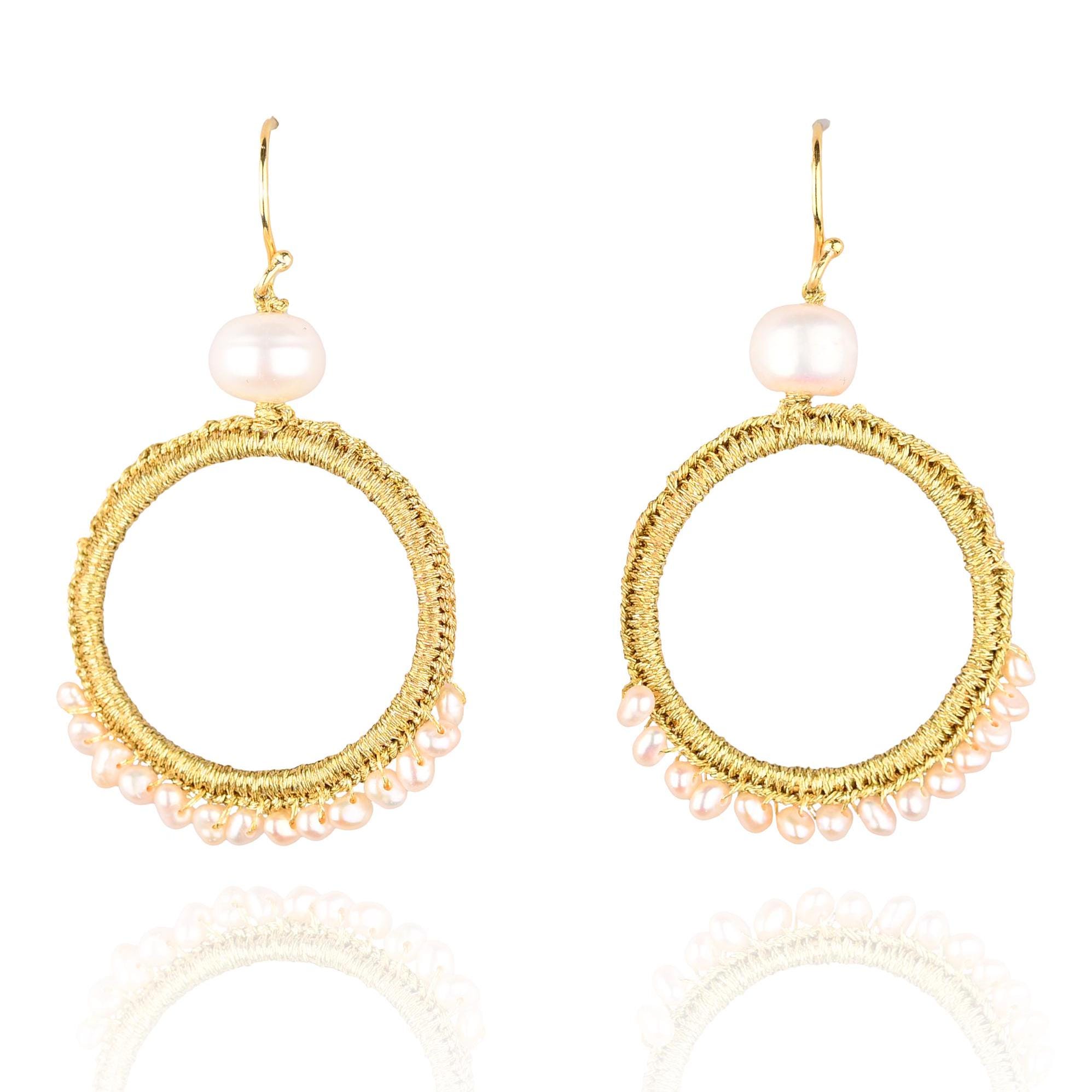 High quality materials have been used for these handcrafted earrings, freshwater pearls, gold plated silver base hook (925) and gold thread. (Each semi-precious stone is unique and not identical)